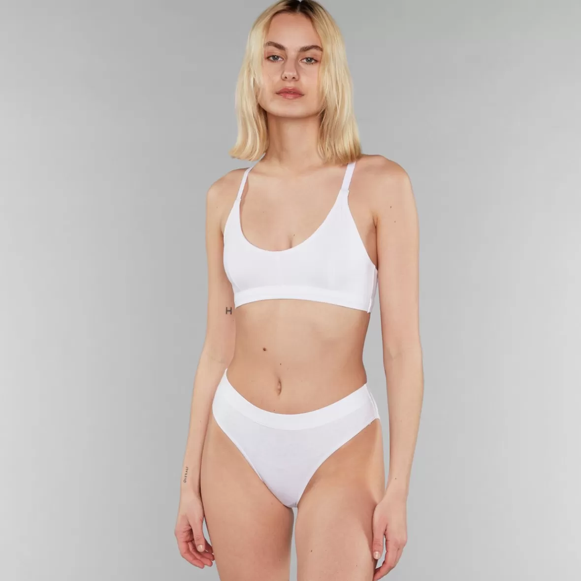 Soft wireless bralette with adjustable straps. Made in a comfortable blend of organic cotton, TENCEL™ Lyocell and elas…